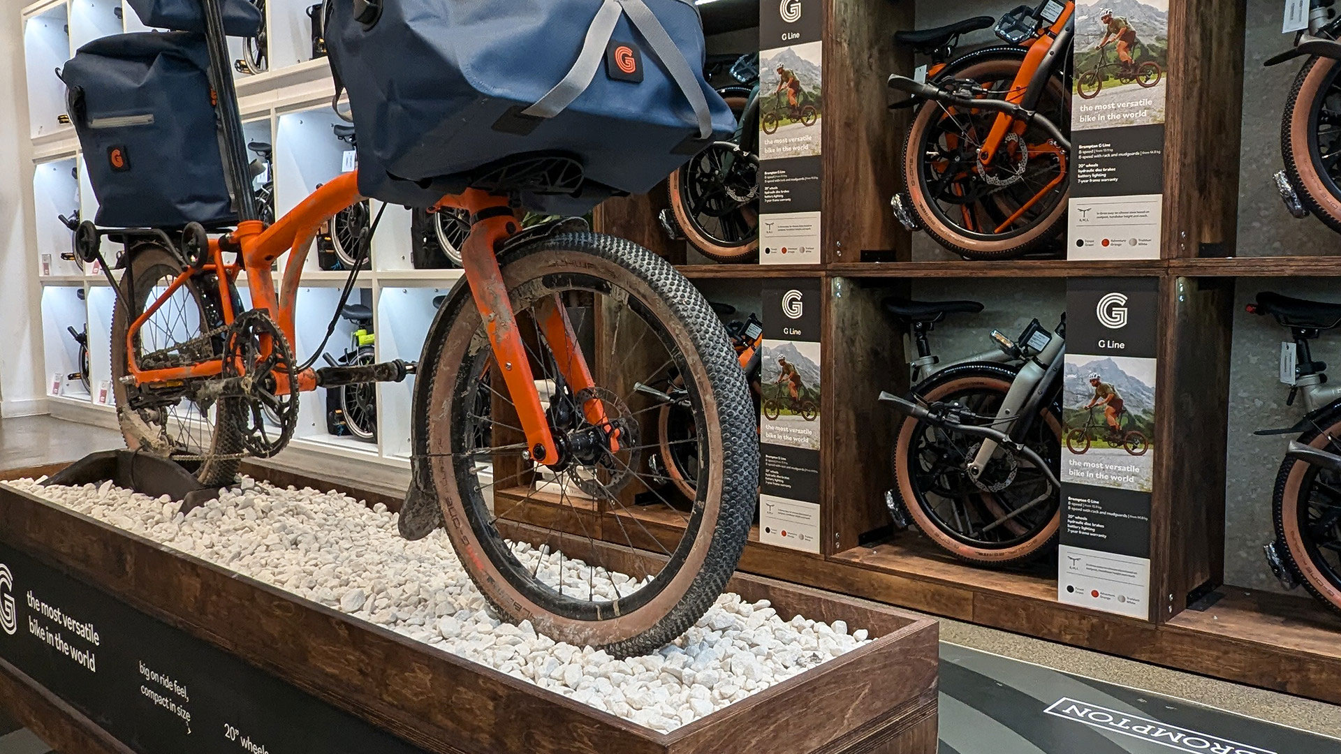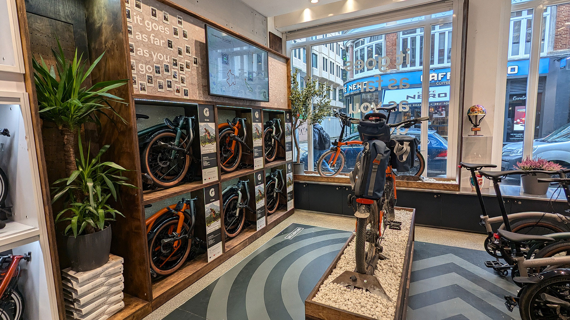 As part of our 5 year partnership, Brompton asked frontline to create a new area in their flagship Junction stores in the UK and Europe to promote their latest model, the G Line. They wanted us to create visual merchandising equipment in their distinctive cube style while positioning the G Line as the only folding gravel bike on the market. For the Covent Garden Brompton wanted to go that extra mile and introduce an element of theatre with an eye-catching window display that accentuate the multi-terrain abilities of the G Line. As a newly certified B-Corp, it was vital we considered the environmental impact of the materials used within our design.