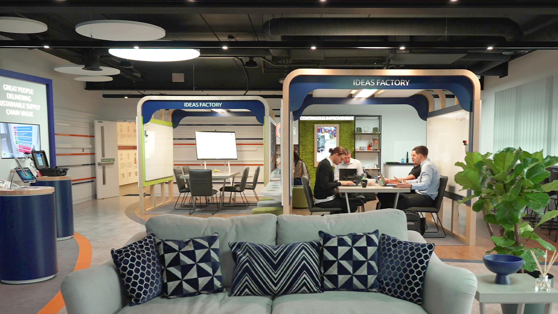 Along with large format videos and innovation zones, the space was designed as a flagship resource for the future of supply chain . We were tasked to design, build, and install all areas of the environment.
